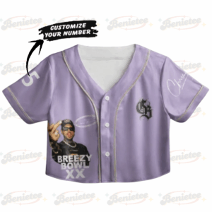 Custom Chris Brown CropTop Baseball Jersey, Breezy Bowl XX Music Tour 2025 CropTop Baseball Jersey
