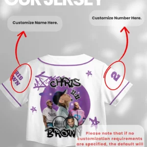 Custom Chris Brown Croptop Baseball Jersey, Chris Brown Tour 2025 Croptop Baseball Jersey
