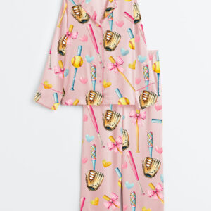 Women’s Summer Clam Coquette Bow Summer Vibes Pink Clam Summer Beach Long Sleeve Satin Pajama Set