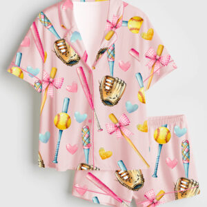 Women’s Teacher Doodle Coquette Pink Bows Back To School Short Sleeve Satin Pajama Set