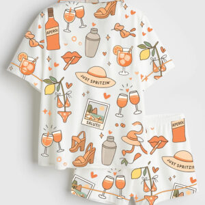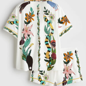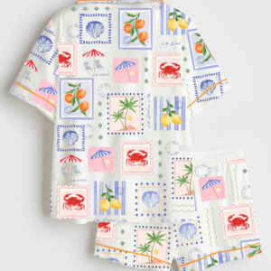 Women’s Summer Memories Fruity Cocktails Tropical Trees Sandy Beaches Short Sleeve Satin Pajama Set