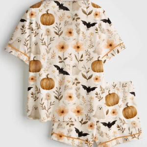 Women’s Slightly Subtle Halloween Skeleton Candy Spooky Season Short Sleeve Satin Pajama Set