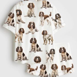 Women’s Swimming In Green Abstract Summer Vintage Art Print Short Sleeve Satin Pajama Set