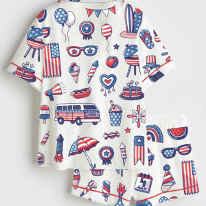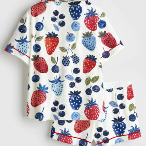 Women’s Strawberry Cottagecore Summer Blueberry The 4th Of July Short Sleeve Satin Pajama Set