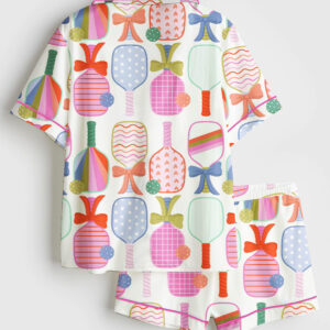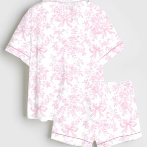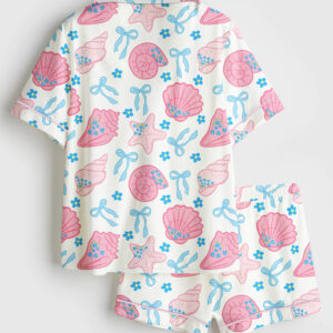 Women’s Pink Seashells Scallops Coquette Bow Pastel Coastal Beach Short Sleeve Satin Pajama Set