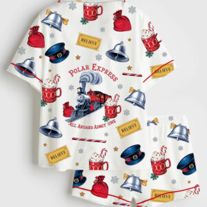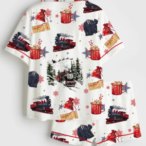 Women’s Polar Express Christmas Train North Pole Retro Christmas Short Sleeve Silky Satin Pajama Set