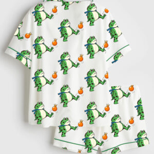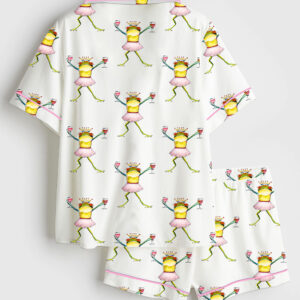 Women’s Portland Frog No Kings In America Funny Political Meme Short Sleeve Satin Pajama Set