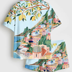 Women’s Pomegranate Cocktail Retro Bar Vintage French 75 Martini Short Sleeve Satin Pajama Set