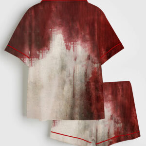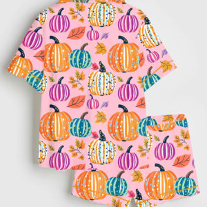 Women’s Pumpkin Skeleton Horror Scene Spooky Season Halloween Short Sleeve Satin Pajama Set