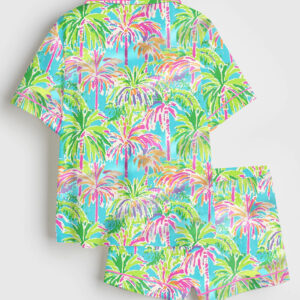 Women’s Preppy Pink Grandmillenial Coquette Pink Christmas Tree Short Sleeve Satin Pajama Set