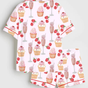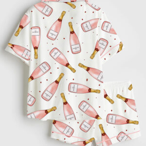 Women’s Pink Cosmopolitan Cocktail Cosmo Drink Weddings & Parties Short Sleeve Satin Pajama Set