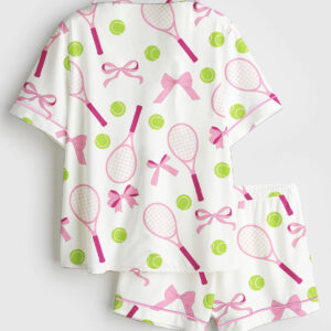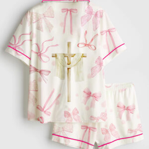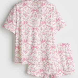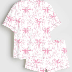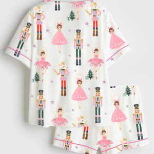 Women’s Pink Christmas Nutcracker Ballet Sugar Plum Fairy Short Sleeve Satin Pajama Set