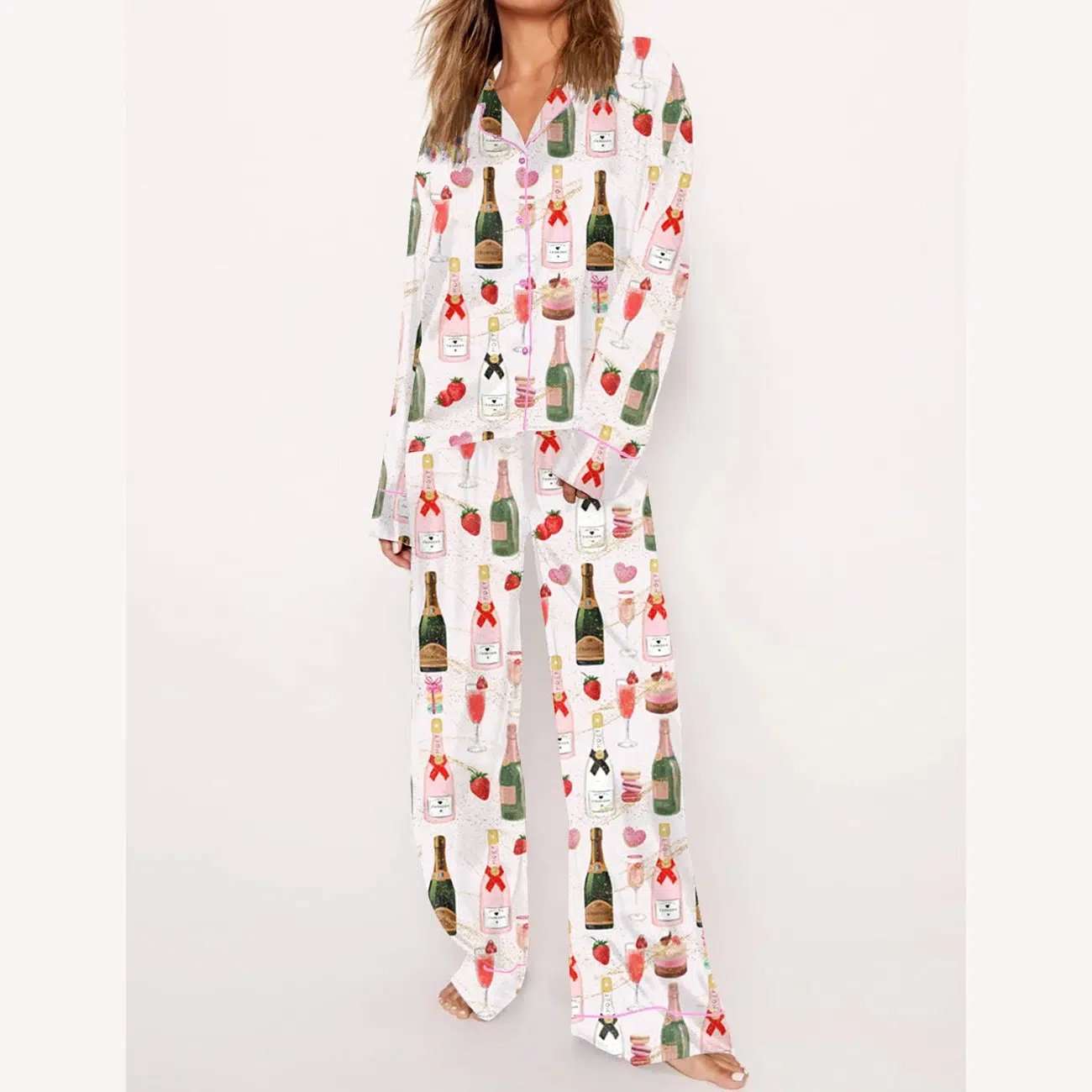 Bucket Nutcracker Print Satin Pajama Set For Women