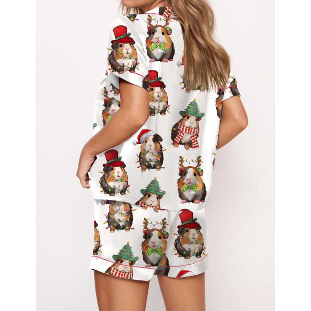 Dachshund And Snowflakes Christmas Satin Pajama Set For Women