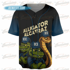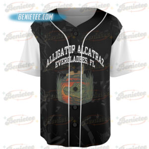 Alligator Alcatraz Basebal Jersey, Funny Animal Graphic Tee, Tropical Island, San Francisco Landmark