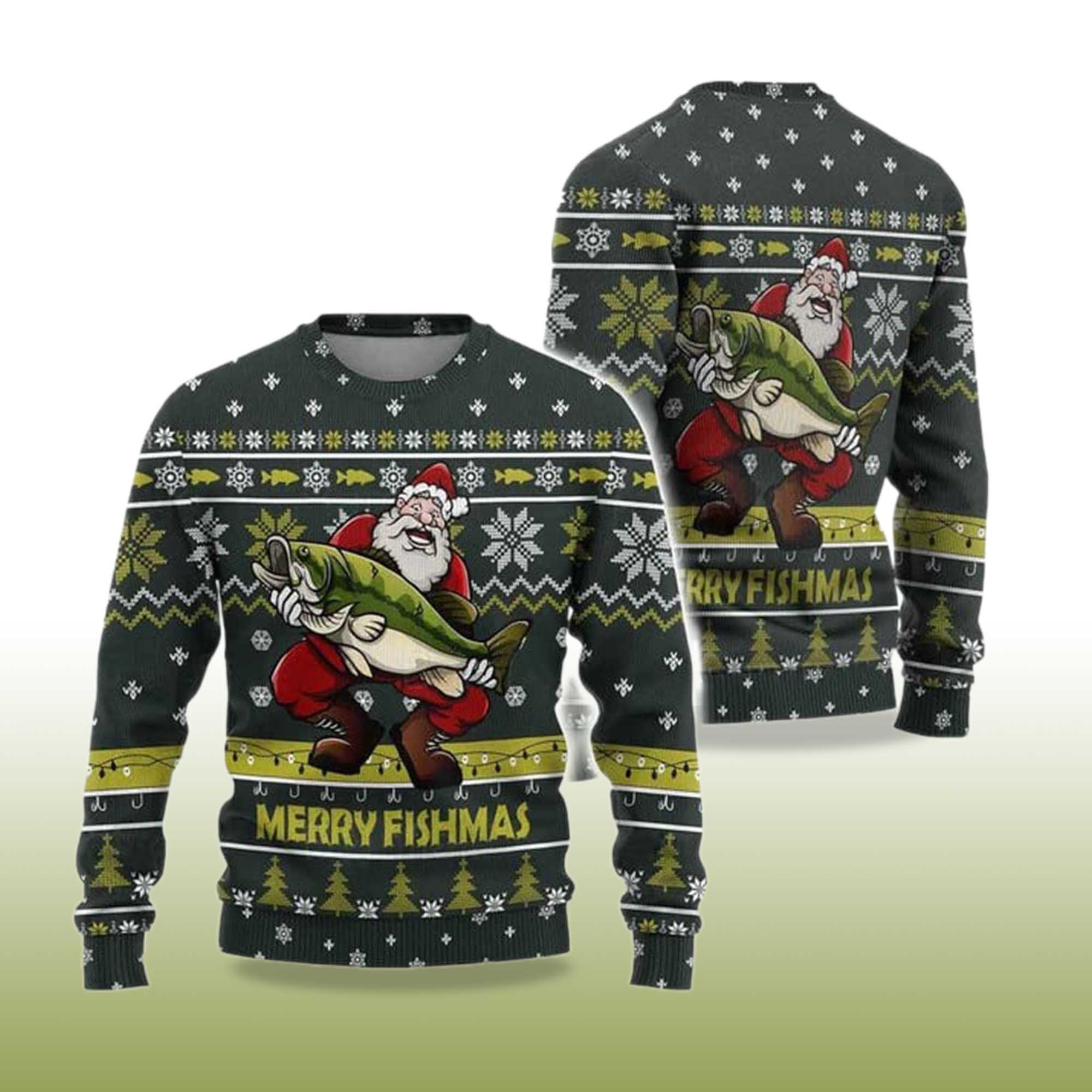 Fishing Lover Merry Fishmas Ugly Sweater 2025