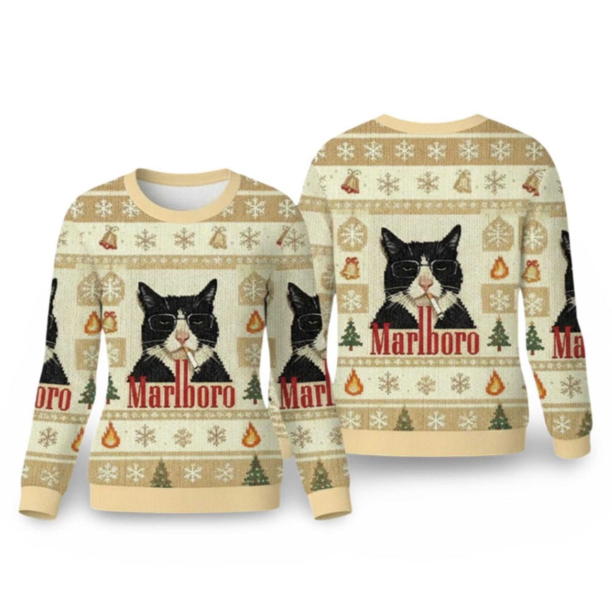 Funny Cat Smoking Cigarette Meme Ugly Christmas Sweater – Grishko.com