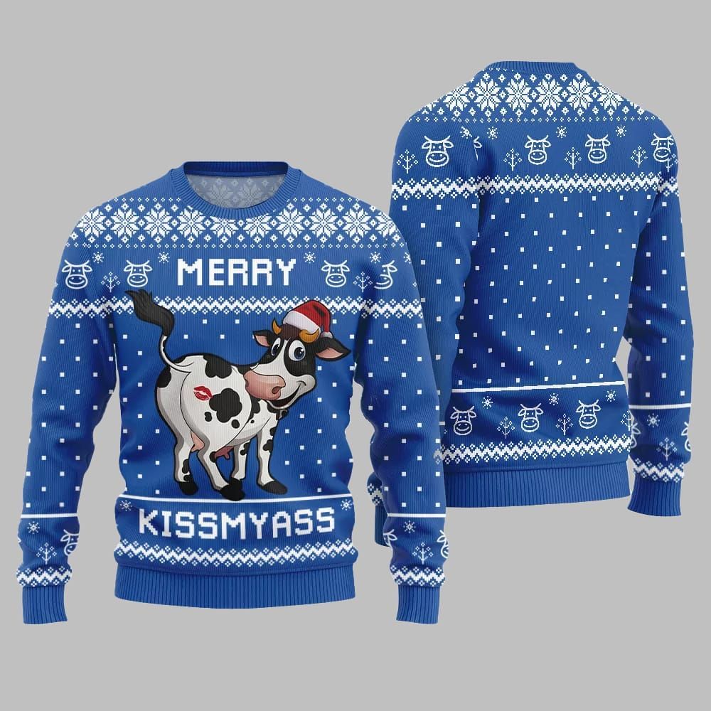 Funny Cow Merry Kissmyass Ugly Sweater Christmas – Grishko.com