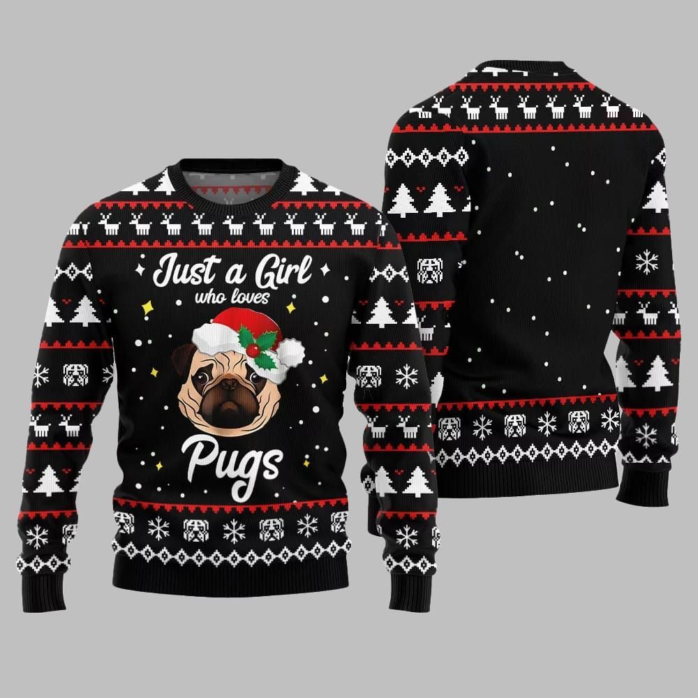 Just a Girl Who Loves Pugs Ugly Sweater Christmas 2025 – Grishko.com
