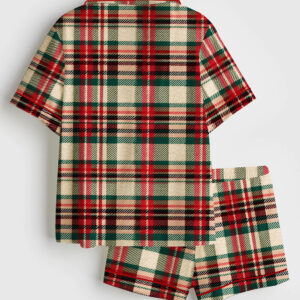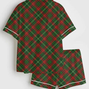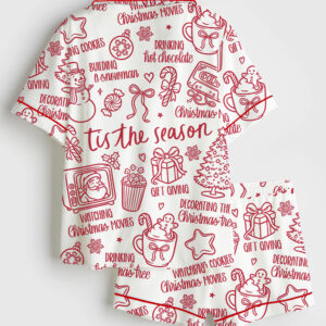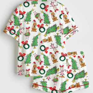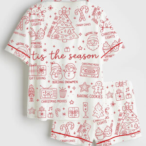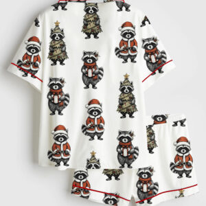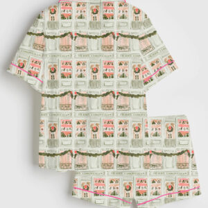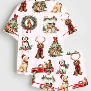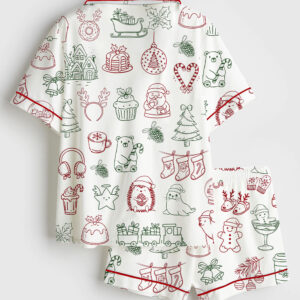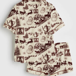 Women’s Christmas Santa Sleigh Reindeer Teapots Nutcrackers And More Short Sleeve Satin Pajama Set