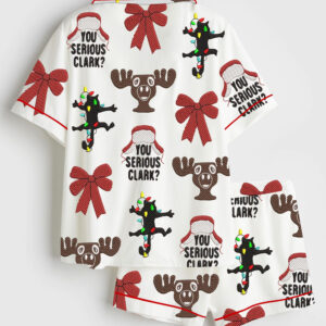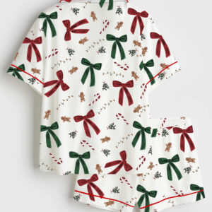 Women’s Christmas Doodles Coquette Bow Festive Holiday Short Sleeve Silky Satin Pajama Set