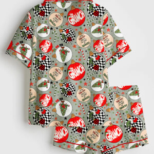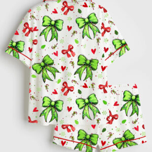 Women’s Christmas Grinch Hate Christmas You’re A Mean One Short Sleeve Satin Pajama Set