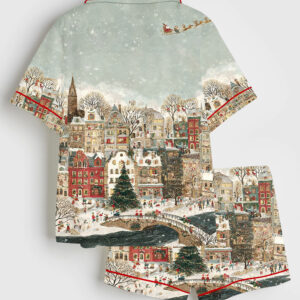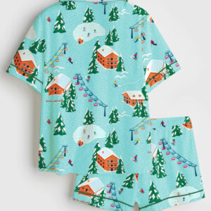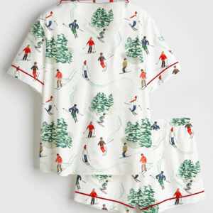 Women’s Christmas Ski Mountain Short Sleeve Satin Pajama Set