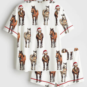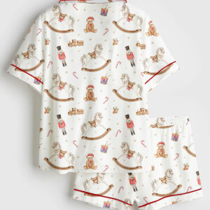 Women’s Christmas Toy Horse Teddy Bear Christmas Nutcracker Drum Short Sleeve Satin Pajama Set