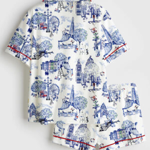 Women’s Christmas In London Winter London Travel London Vibes Short Sleeve Satin Pajama Set