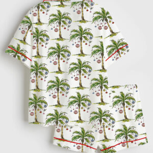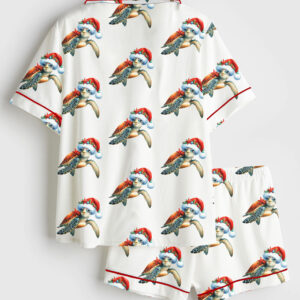 Women’s Coastal Christmas Sea Turtle Beach Holiday Short Sleeve Silky Satin Pajama Set