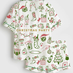 Women’s Christmas Please Retro Festive Cocktail Holiday Drink Short Sleeve Satin Pajama Set