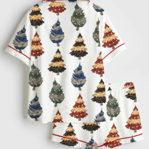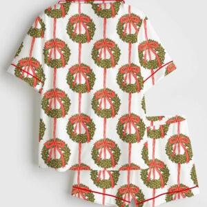 Women’s Christmas Mistletoe Watercolor Garland Christmas Holy Tree Short Sleeve Satin Pajama Set