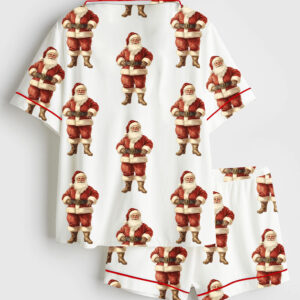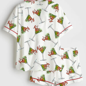 Women’s Christmas Santa Martini Cocktail Mid Century Modern Cocktail Short Sleeve Satin Pajama Set