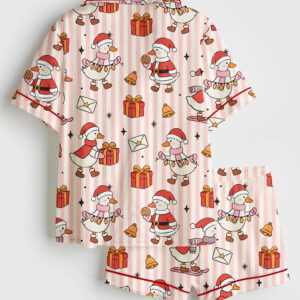 Women’s Christmas Santa Goose Festive Holiday Silly Goose Short Sleeve Satin Pajama Set
