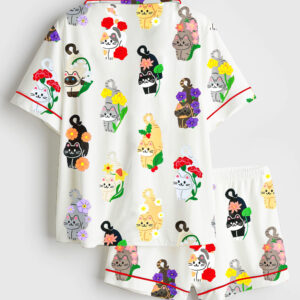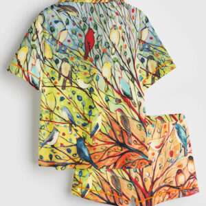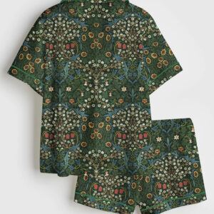 Women’s Antique Colors Sunflowers Plant Lover Gardening Print Short Sleeve Satin Pajama Set