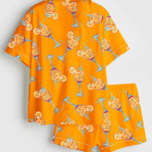 Women’s Aperol Spritz Cocktail Short Sleeve Satin Pajama Set