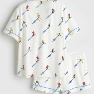 Women’s Apres Ski Mini Skier Minimalist Watercolor Ski Print Short Sleeve Satin Pajama Set