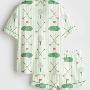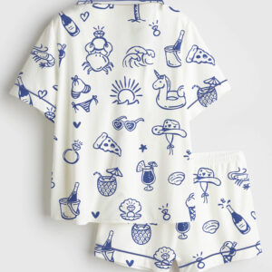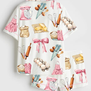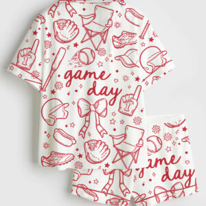 Women’s Baseball Game Day Coquette Hand Drawn Doodle Print Short Sleeve Satin Pajama Set