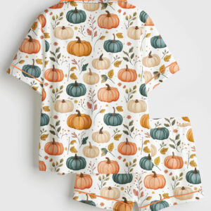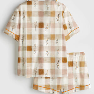 Women’s Autumn Boho Minimalist Fall Checkered Retro Thanksgiving Short Sleeve Satin Pajama Set