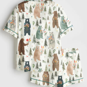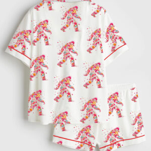 Women’s Big Foot Cute Floral Big Foot Adventure Nature Lover Print Short Sleeve Satin Pajama Set