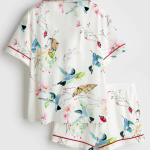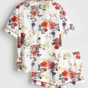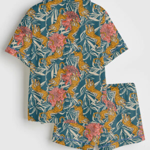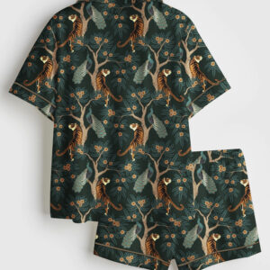 Women’s Bengal Tiger Exotic Big Cat Peony Floral Art Print Short Sleeve Satin Pajama Set