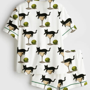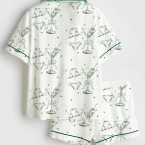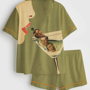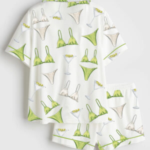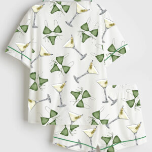 Women’s Bikinis And Martinis Bachelorette Dirty Martini Print Short Sleeve Satin Pajama Set