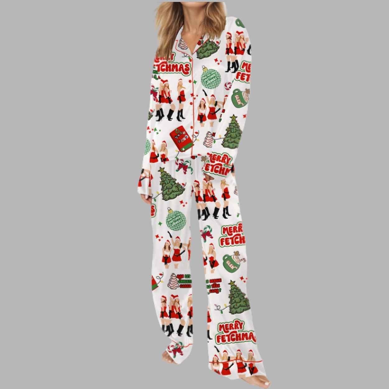 Merry Fetchmas Silky Satin Pajama Set