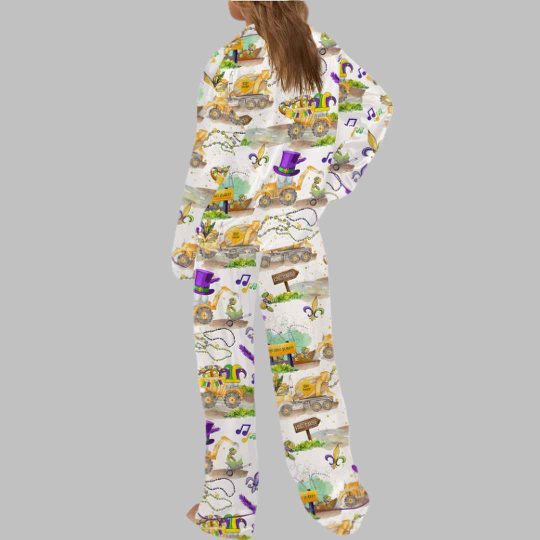 Throw Me Something Mister Mardi Gras Satin Pajama Set