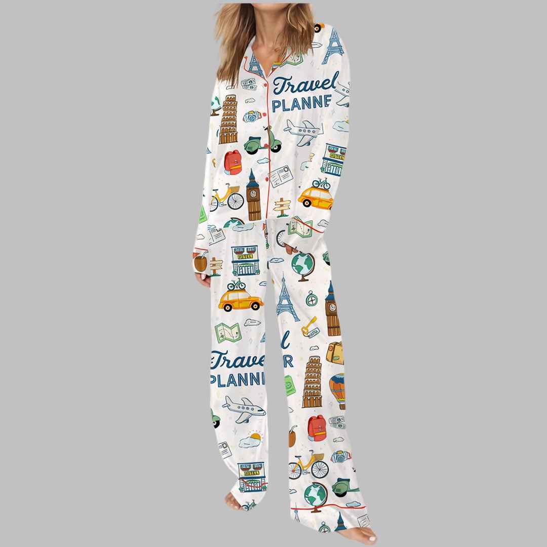 Travel Planner Satin Pajama Set