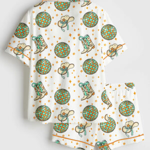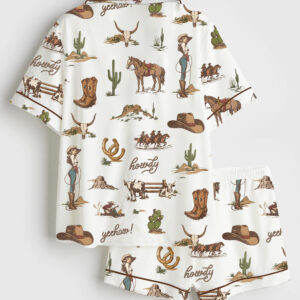 Women’s Skeleton Cowboy Riding Skeleton Horse Gothic Western Halloween Short Sleeve Satin Pajama Set