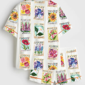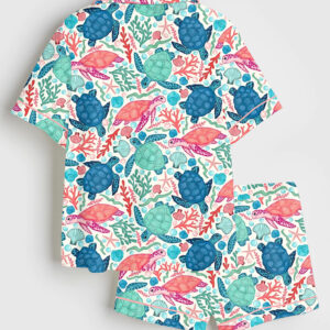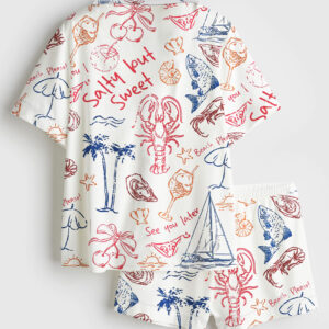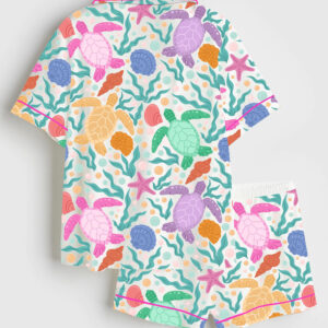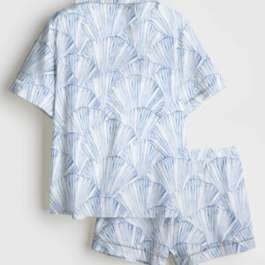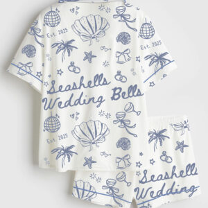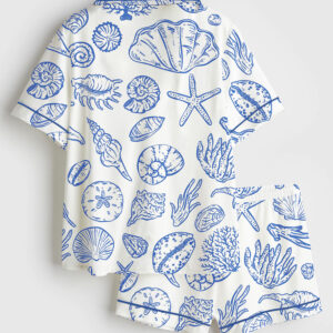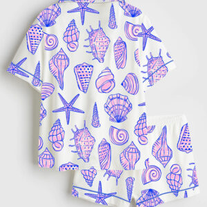 Women’s Seashells And Coastal Treasures Seaside Ocean Shell Short Sleeve Satin Pajama Set