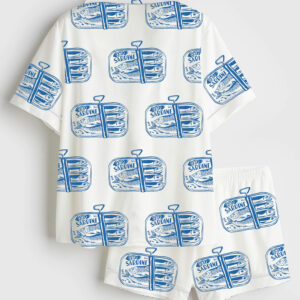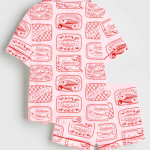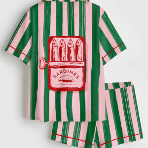 Women’s Shark Respect The Locals Hand Drawn Shark Summer Beach Travel Short Sleeve Satin Pajama Set