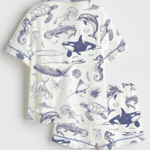 Women’s Sea Animal Ocean Nature Sealife Ocean Whale Orca Turtle Dolphin Long Sleeve Satin Pajama Set