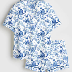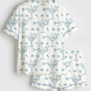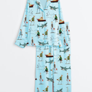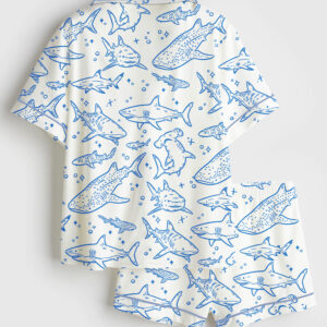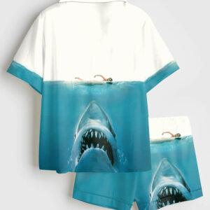 Women’s Shark Movie Sea Travel Short Sleeve Satin Pajama Set